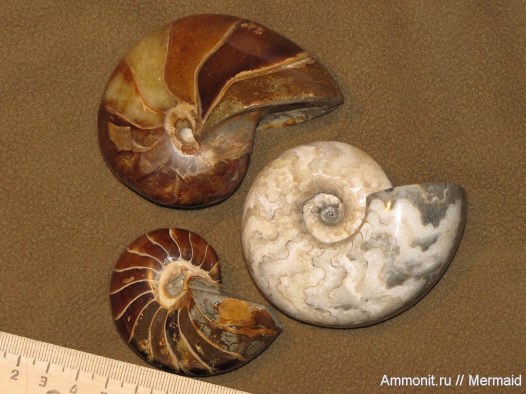 наутилусы Cymatoceras sp. и верхнемеловой аммонит Vascoceras sp. из Gombe, Нигерия.