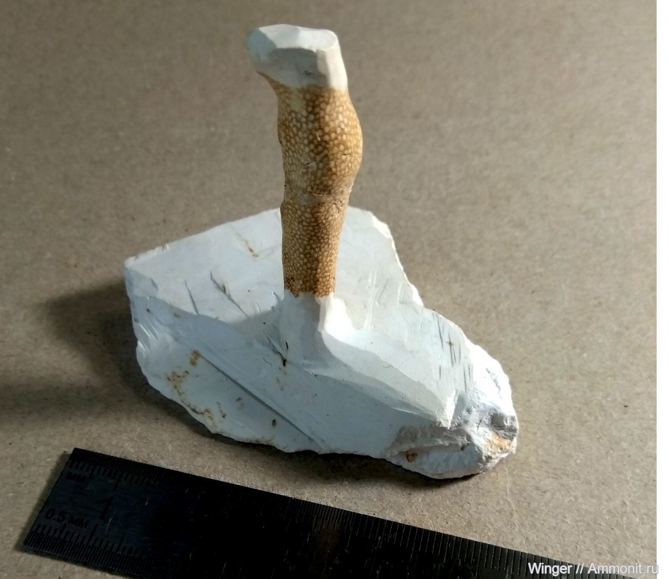 В 22м году при поиске в мелах начал обращать внимание на всякого рода "ржавые" артефакты в сколах. В очередном расколотом кусочке мела мне показалась интересной картина с концентрическим рисунком рыжего цвета. Было решено забрать и склеить. После с краев начал подбираться к месту склейки срезая мел миллиметр за миллиметром, как итог получил нечто похожее на трубку в сечении и вот таким рисунком. Мои домыслы говорят что это скорее всего губка, или кусочек от неё. За более компетентные мнения в комментариях буду очень признателен, если возможно определить еще более точно, будет совсем прекрасно.