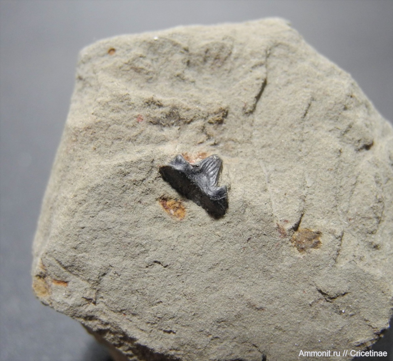 Размер зуба 0,6 см. Довольно странный зуб, есть сходство с Cladodus и Glikmanius, но от них он отличается тем, что у него по одному боковому шипику, а также другим "рисунком линий" центрального шипа. Прошу уточнить определение?