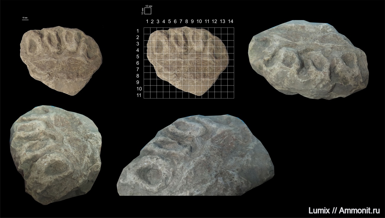 Приветствую всех. Нашел камень в русле реки Салгир, в черте города Симферополь, ниже по течению реки после Симферопольского водохранилища, возле ботанического сада Таврического национального университета. Я предполагаю что на фото окаменевший отпечаток лапы какого-то зверя. На верхнем левом фото, второй слева выемке виден отпечаток похожий на коготь. Насколько я помню в 2019-2020 годах делали реконструкцию набережной реки Салгир и насыпали гравий для укрепления берегов реки. Скорее всего моя находка из этого гравия.