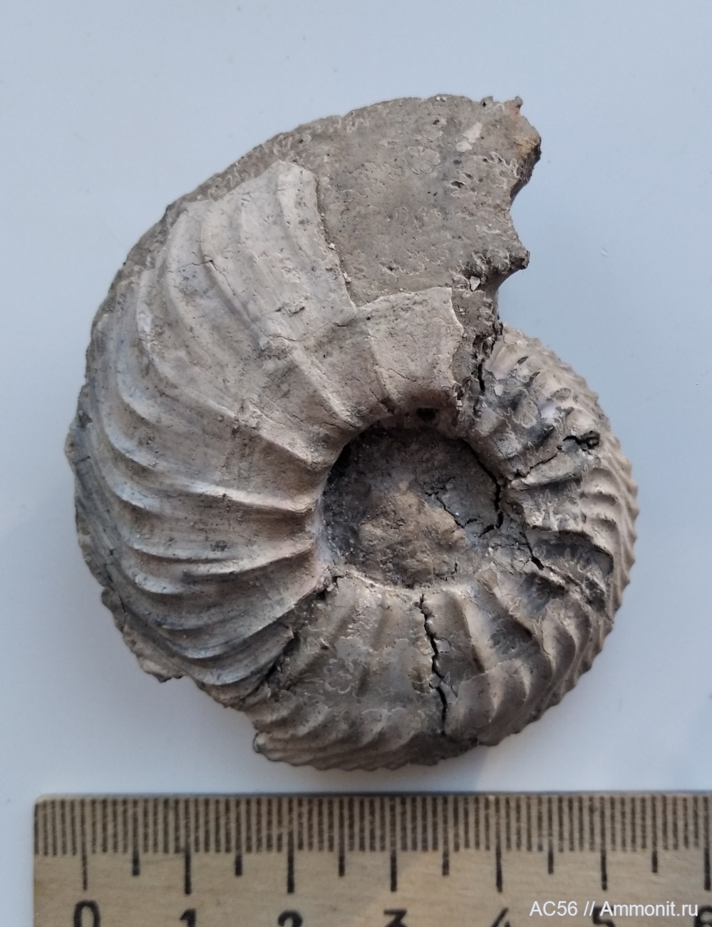 Начальные обороты от экземпляра более 20 см. Найден в 2018 г. в овраге у д. Быково, рядом с Унжей в глине зоны densiplicatum. Сечение - Фото