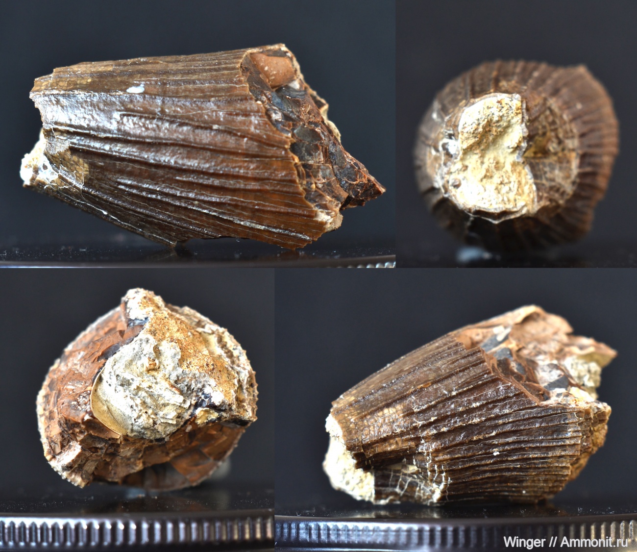 Место находки Кашпир Сызрань, возраст верхняя юра, вероятнее всего Волжский (Титонский) ярус, возможно берриас если ориентироваться на литературу (точно сказать трудно поскольку находка была в осыпи) 145-152млн лет. Размер 25х30х46мм