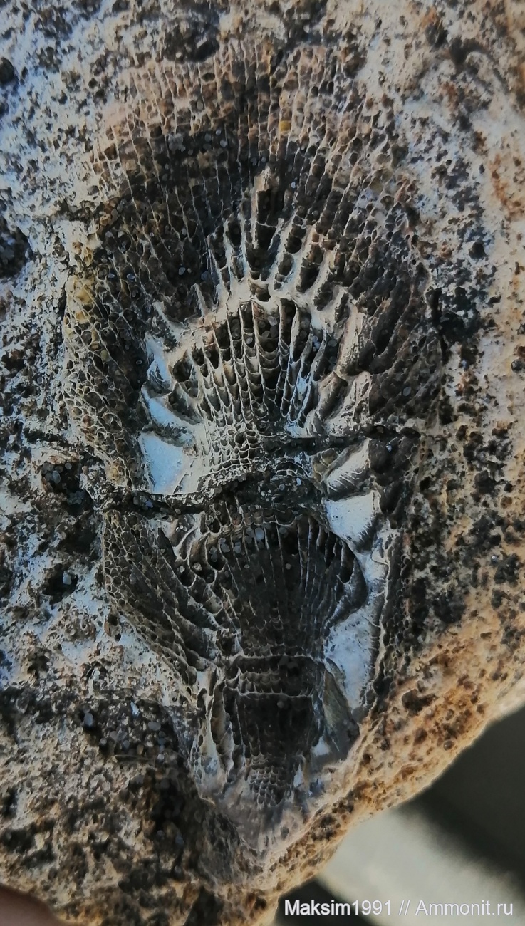 Красивый срез одиночного коралла. Только вот насчет кембрия сомнительно. Очень похоже на находки из подмосковного карбона. | ||||||