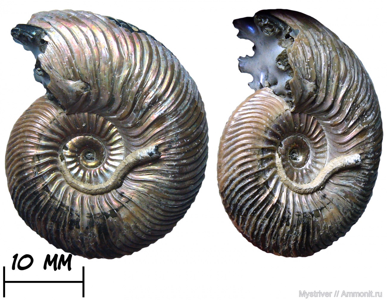 Он еще и с хорошим прижизненным повреждением у самого конца сохранившейся части раковины! | ||||||