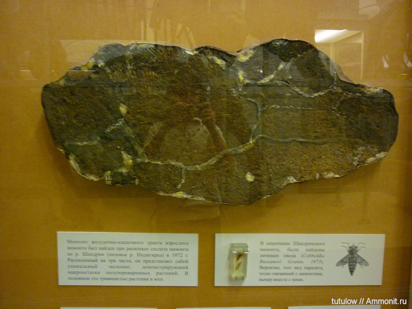 Насколько мне известно, копролит - это окаменелый экскремент. Здесь представлено содержимое желудочно-кишечного тракта, так что да, возможно, термин "копролит" был бы более уместен, однако в описании под "содержимым" указано, что это монолит. Может, это случайная ошибка того, кто делал описание, однако, пусть это будет на его совести. | ||||||
