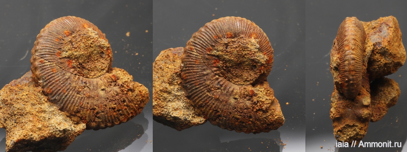 Извлечен из оолитовых глинистых сидеролитов, служивших субстратом для фосфатизации на проявлении Шанкинка (нижнее течение реки Федьковская, Рузский район Московской области). Предположительно Kosmoceras. Максимальный диаметр - 39 мм.