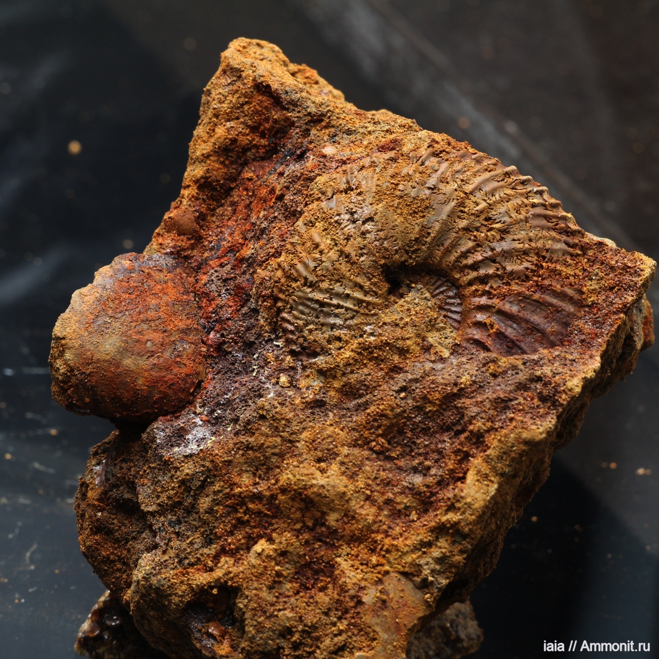 Относительно крупный (около 8 сантиметров), но очень плохой сохранности. Вероятно, кто-то из подсемейства Quenstedtoceratinae.