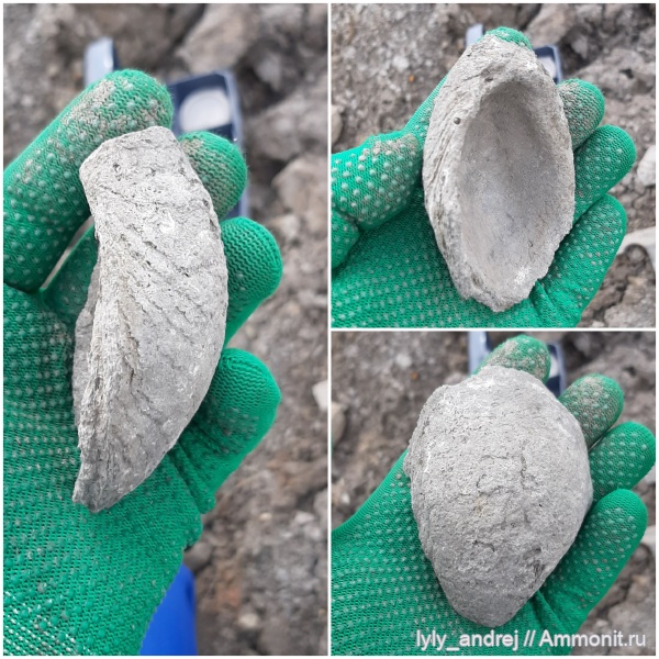 Думаю что это сильно выветренная створка Gryphaea. Похожа на Хорошая песковская Gryphaea. | ||||||