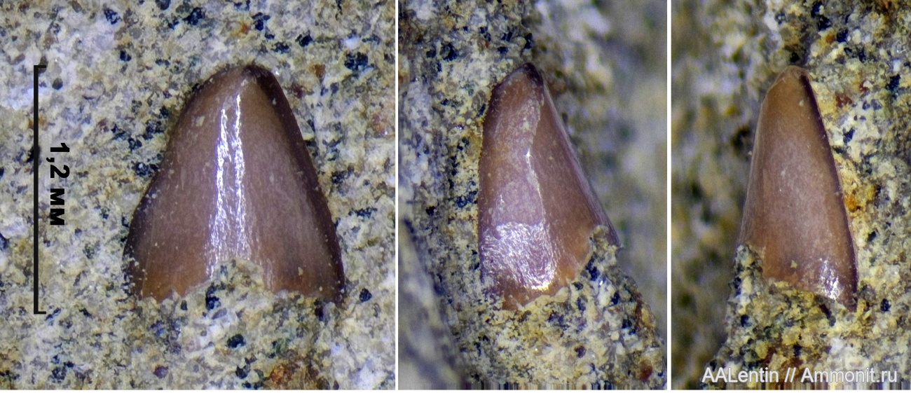 Коронка зуба рыбы была найдена в ходе измельчения куска зелёного песчаника взятого из зоны Rjasanensis Рязанского яруса нижнего мела.