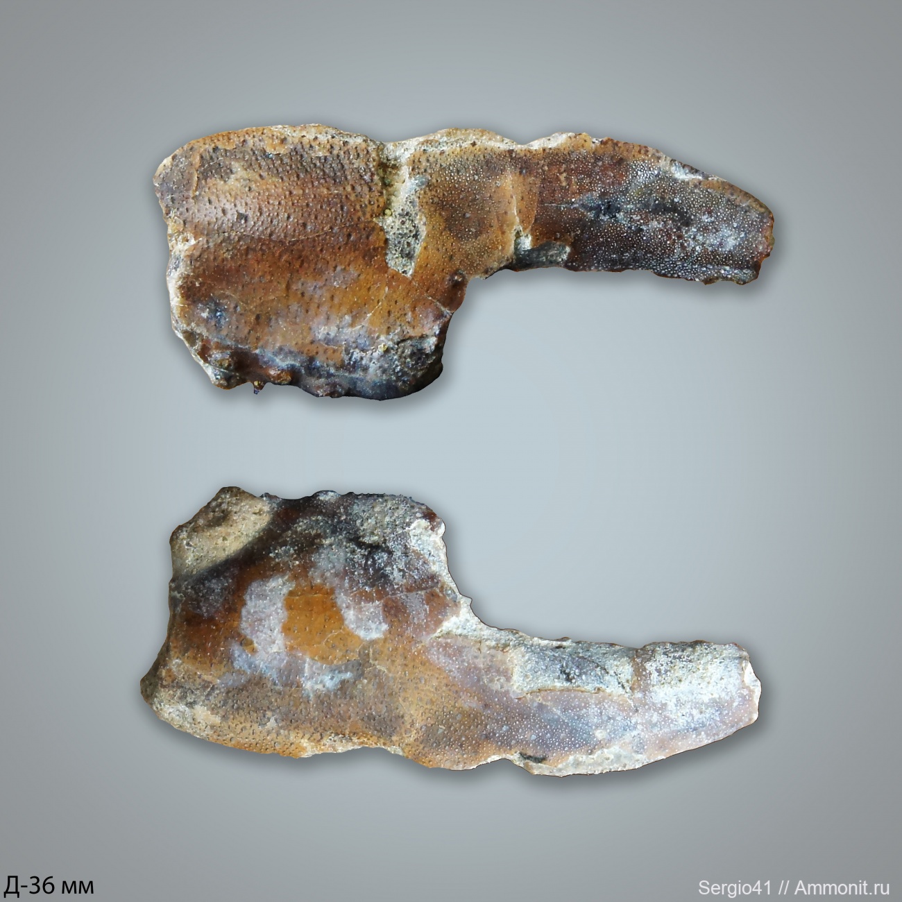 Разрез один. Эти две лежали рядом, но вряд ли это детали одного «зверя». Там очень много фрагментов ракообразных. Мешанина.