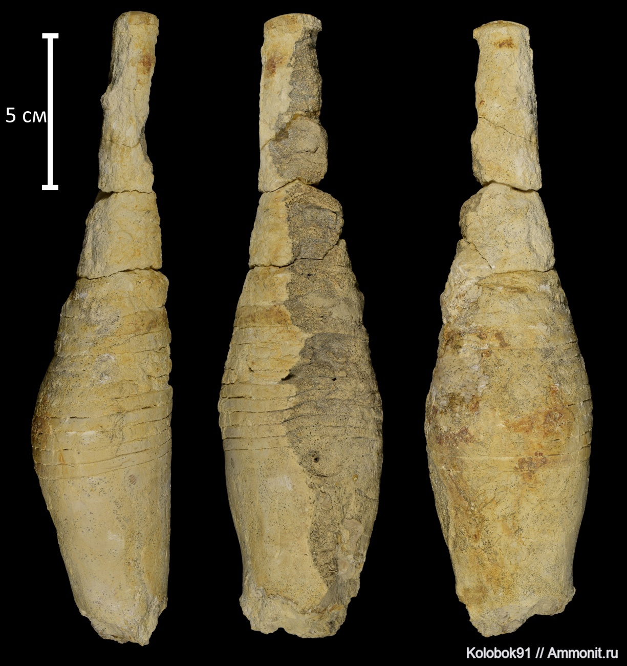 Это не Paramooreoceras, тот из псевдоортоцерид и имеет вполне ортоцеридный облик, вот: Фото (из книги Журавлева Ф.А. (1978) Девонские ортоцероды.). А на фото головоножка дискосоридно-онкоцеридного облика. Похожа на Mecynoceras rex (фото из книги Журавлева Ф.А. (1972) Девонские наутилоидеи. Отряд Discosorida), правда, он более сжатый с боков, Ваш образец пошире, но может быть это изменчивость или Mecynoceras, но не rex, а другой вид. | ||||||
