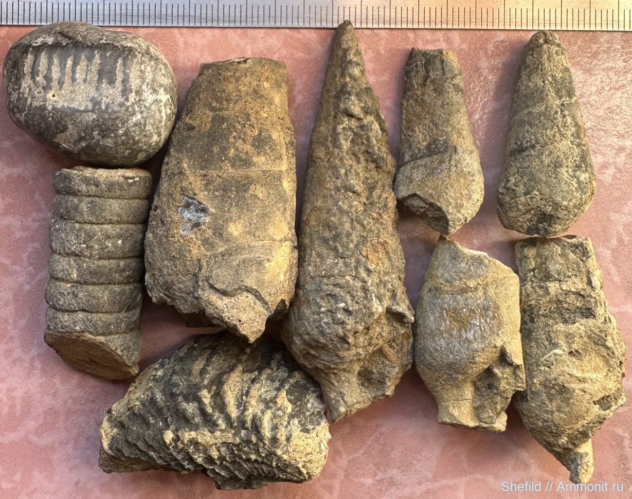 Раковины двух видов (Lopha sp. и ?), коралл, и стебель лилии 22.06.23г