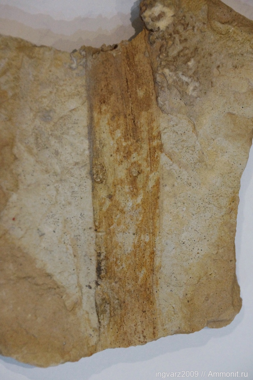 На обнажении нашлись только 2 растительных отпечатка в прослойках известняка, раскалывающегося на тонкие пластины. В массивных известняках с этого обрыва тьма брахиопод.