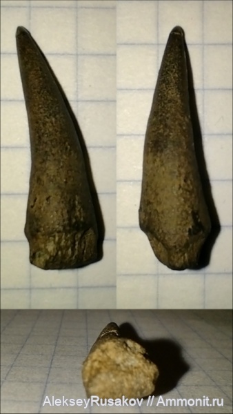 Зуб найден среди акульих, но в сечении он круглый, не плоский или полукруглый, как акульи