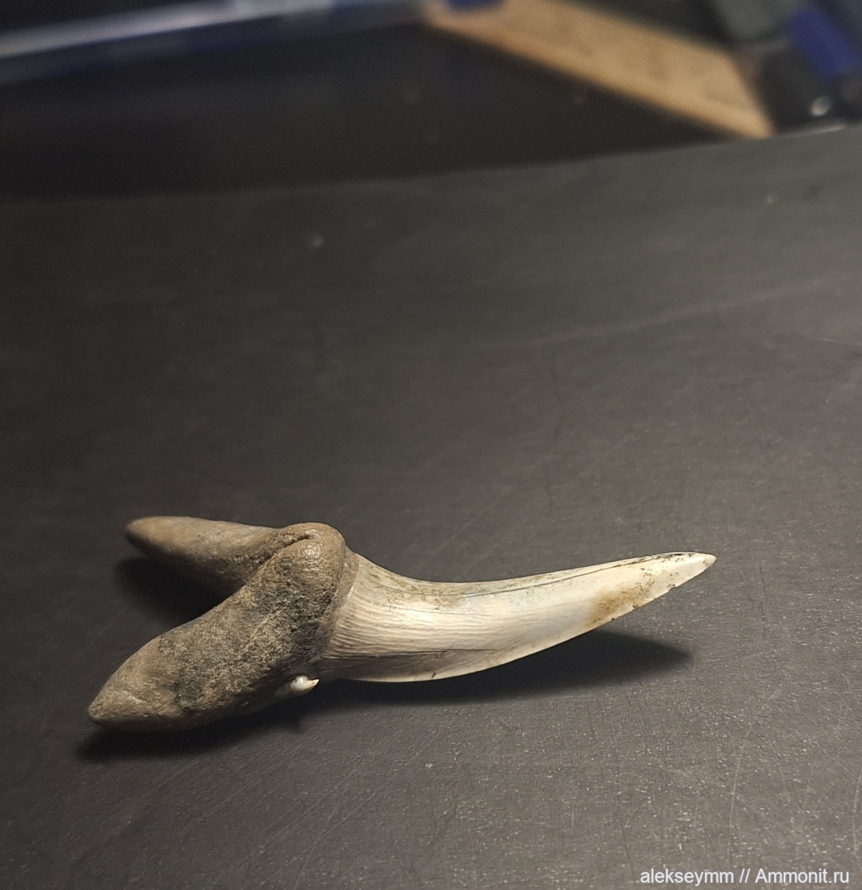 Размер зуба 5,7 см. Коронка 3,5 см корень: 2,2 см. Место находки Казахстан, Кустанайская область,Возраст