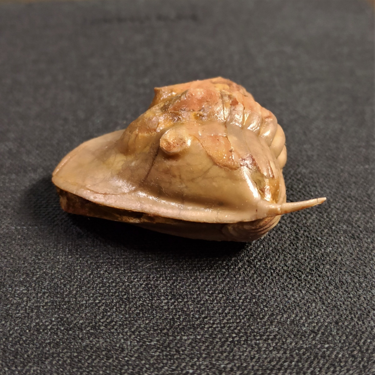 Копошась на отвале взял в руки камень и хотел отбросить, как мешающий процессу, но увидел какие-то знакомые очертания. Вроде свертыш, вроде азафус, глаз нет, что с хитином не понятно, т.к. путиловский желтяк так исказил общую картину, что сначала показалось, что это только отпечаток и хитина нет.