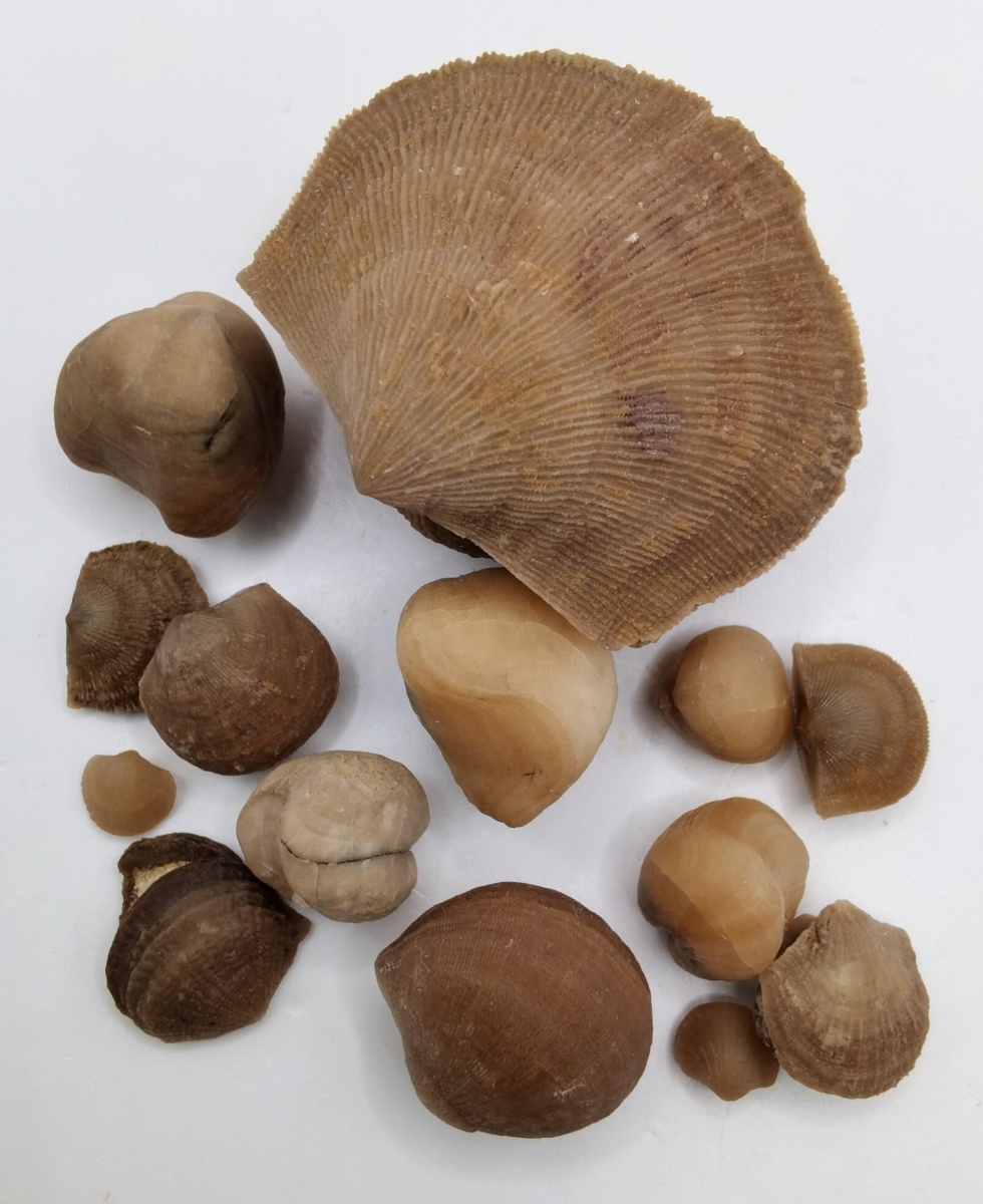 Давно не находил крупных брахиопод в этом карьере. Эта особо крупная. В ширину 45 мм. Для сравнения групповое Фото с обычными.