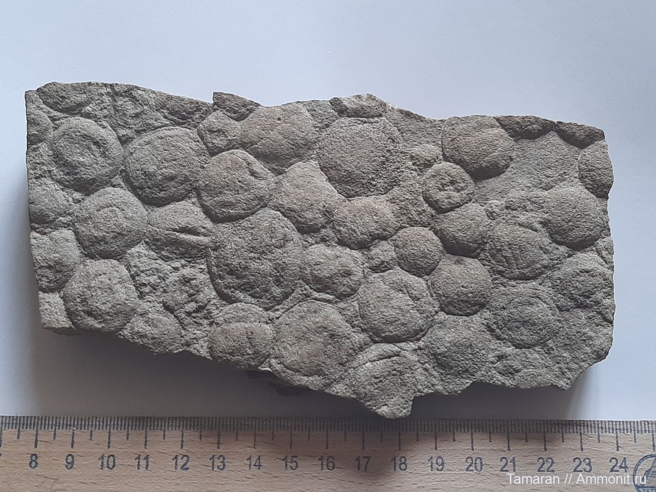 "Медузоиды. Первые загадочные животные нашей планеты. Представители удивительного, таинственно исчезнувшего царства первейших животных фауны эдиакара. Протерозой. Вендский период, 650 млн лет. Украина, Могилёв-Подольский, р. Немия. Nemiana simplex".