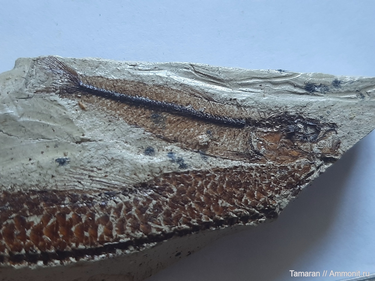 Лучшая керченская рыбка в коллекции. Маленькая, но хорошо сохранившаяся. Так как в Керчи порода не такая прочная, как в Пшехе, образец покрыт лаком для защиты.