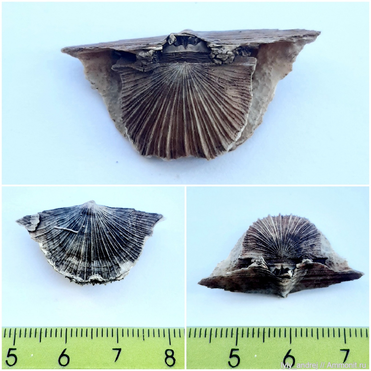 На отвалах стешевской глины попалась эта брахиопода, словно восходящее солнце. Вроде ба как обе створки на месте, цвет меня прельстил и я её забрал.