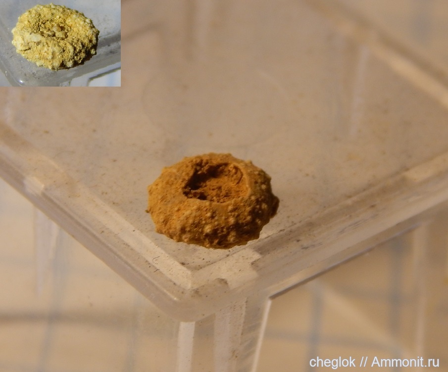 Не Plegiocidaris точно и вообще не представитель отряда Cidaroida. Эта вторая подобная находка из Гжели в этом году, поздравляю!!! | ||||||