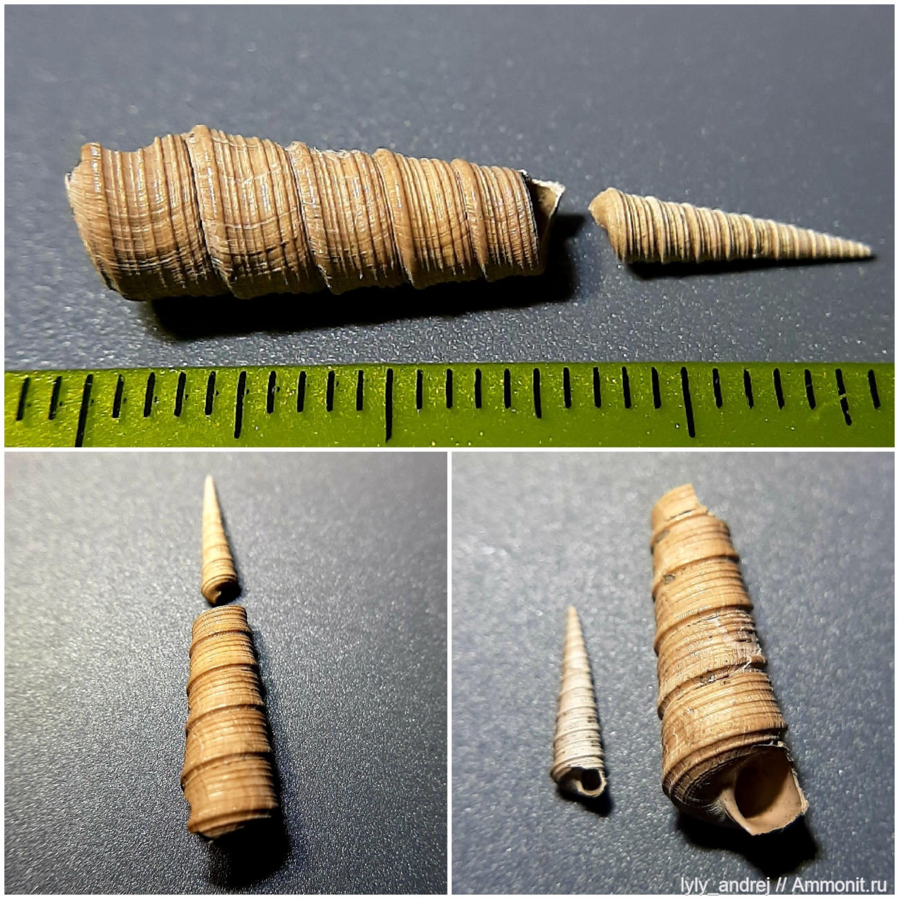 По дождевым промоинам Оксфордского яруса пособирал разную "мелюзгу". В массе попалась новая, для меня гастропода, жаль без вершинки. Рядом на фото окончание от другой гастроподы.