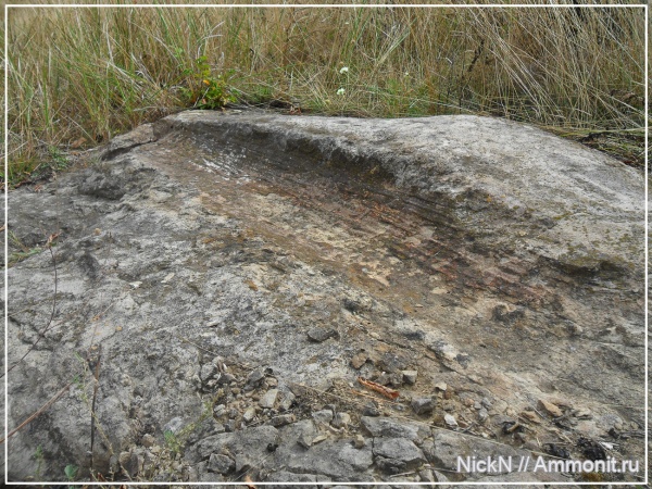 Осень. Дожди. Никуда не выбраться. Пошел покидать спиннинг и по пути сфотографировал отпечаток в известняке то ли папоротника то ли древовидного хвоща, пока ещё на нём хоть что-то можно разглядеть- с каждым годом он выглядит всё хуже и хуже. Размер камня примерно 1.5 на 1.2/1.3 метра. Возраст отпечатка думаю не старше 150 миллионов лет - именно в это время,как пишет Ярков, Тетис у нас отступил и появились острова и прибрежная низменность,покрытая лесом. Глазами рисунок выглядит более читаемым, чем на Фотографиях. К сожалению камешек немного великоват и покрутить его, что бы свет упал под нужным углом, возможным не представляется.
