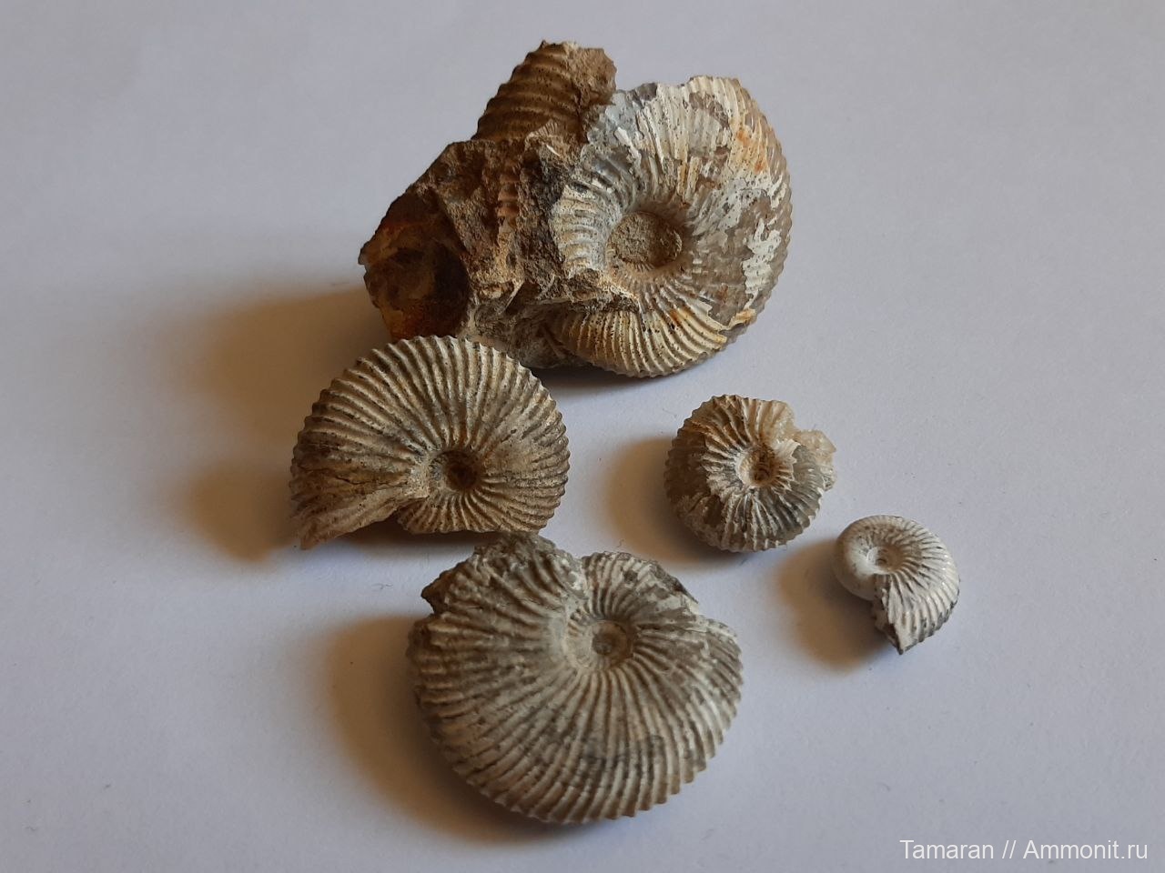 На днях пришли эти чудные малыши - псевдокадоцерасы (Pseudocadoceras cf. boreale Buckman, 1919) и чамоусеттии (Chamoussetia chamousseti (d'Orbigny, 1847)). Размеры раковин - от 1,3 см (видимо, детёныш) до 3,24 см (взрослая особь, видимо, при жизни доходила до 4 см). Замещены кальцитом.