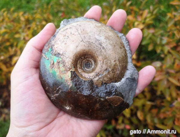 Почти не деформированный и почти полноразмерный окенсис (11 см). Массовый вид исторической "зоны okensis", но приемлемого качества найти сложно.