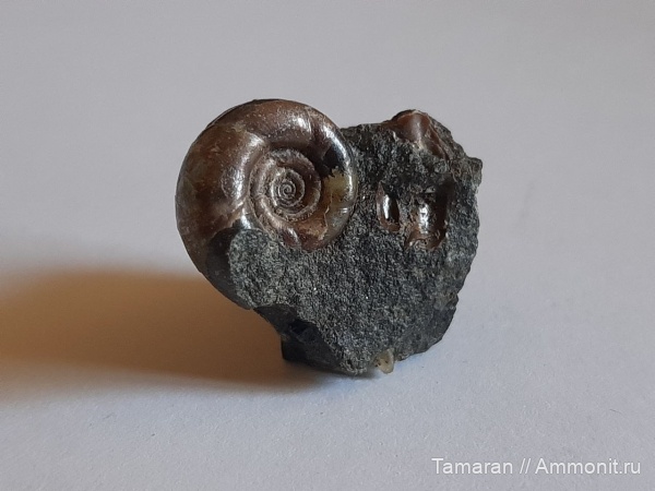 Маленький Eogaudryceras (Eotetragonites) umbilicostriatus (Collignon, 1963). Диаметр - всего 1,43 см.