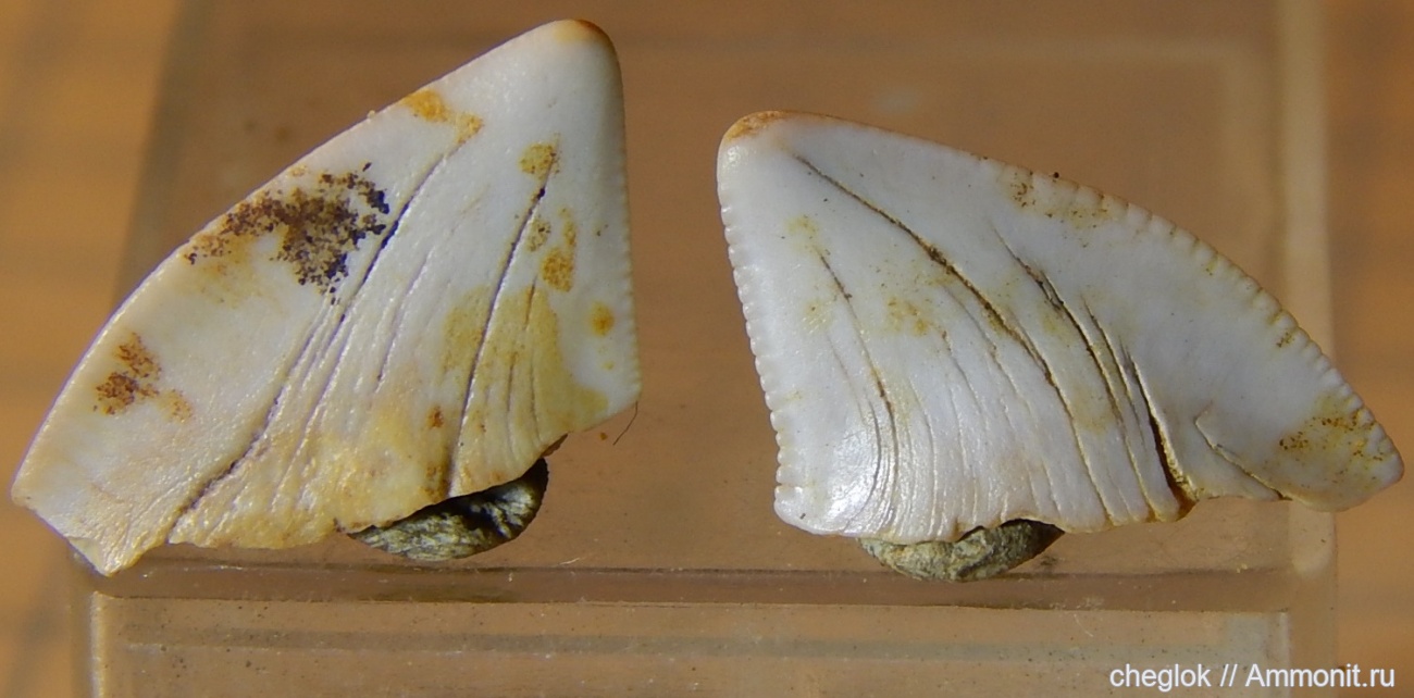 Были в подборке с Эмбы и скваликораксы, но не целые, да ещё и окатанные. Для комплекта всё равно выложу, глядишь, поможет кому собраться на Эмбу. Размеры типичные, около 15 мм.