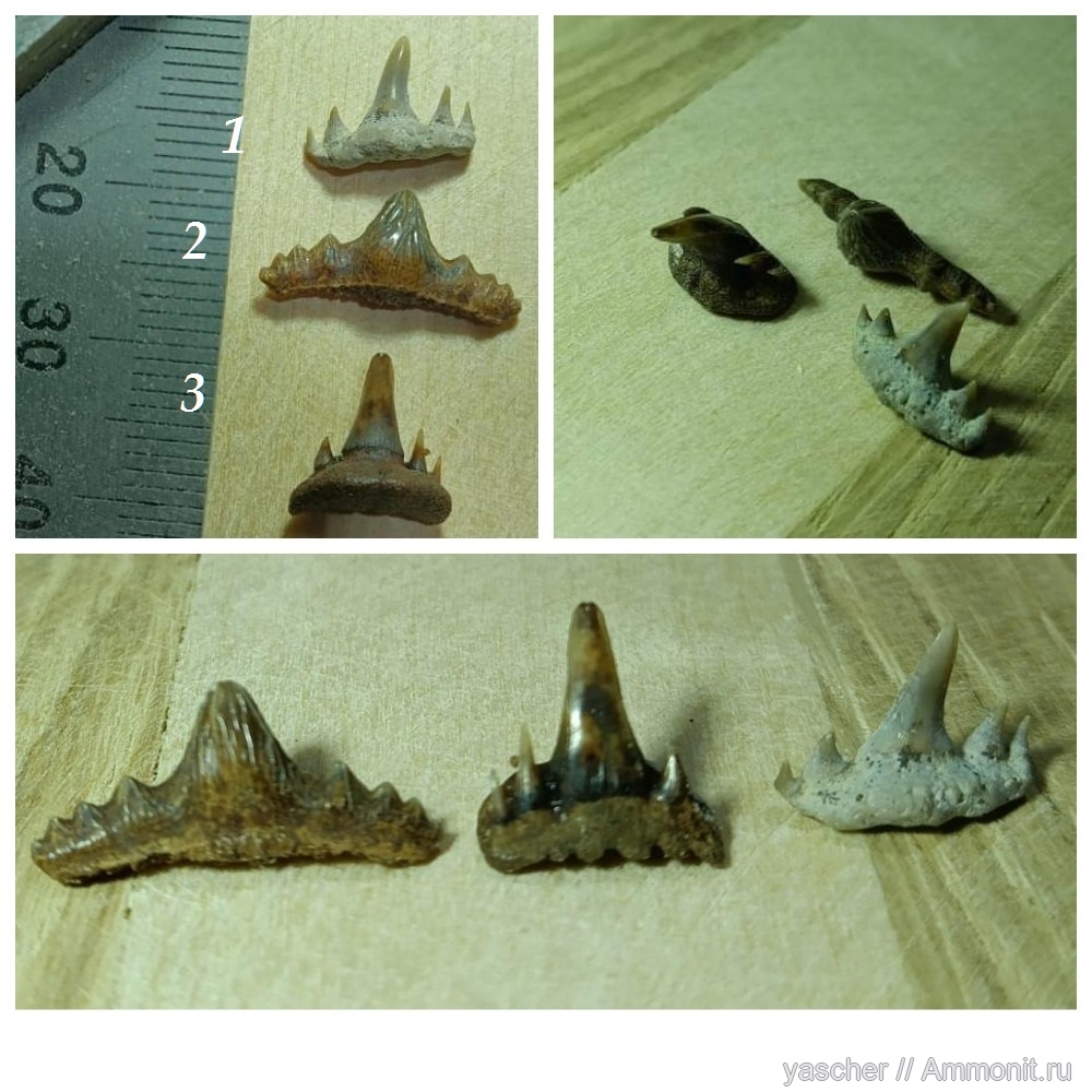Два зуба Paraorthacodus и один зуб Polyacrodus. Если посмотреть в разделе Места находок по Тамбовской области, там есть такие же зубы. | ||||||