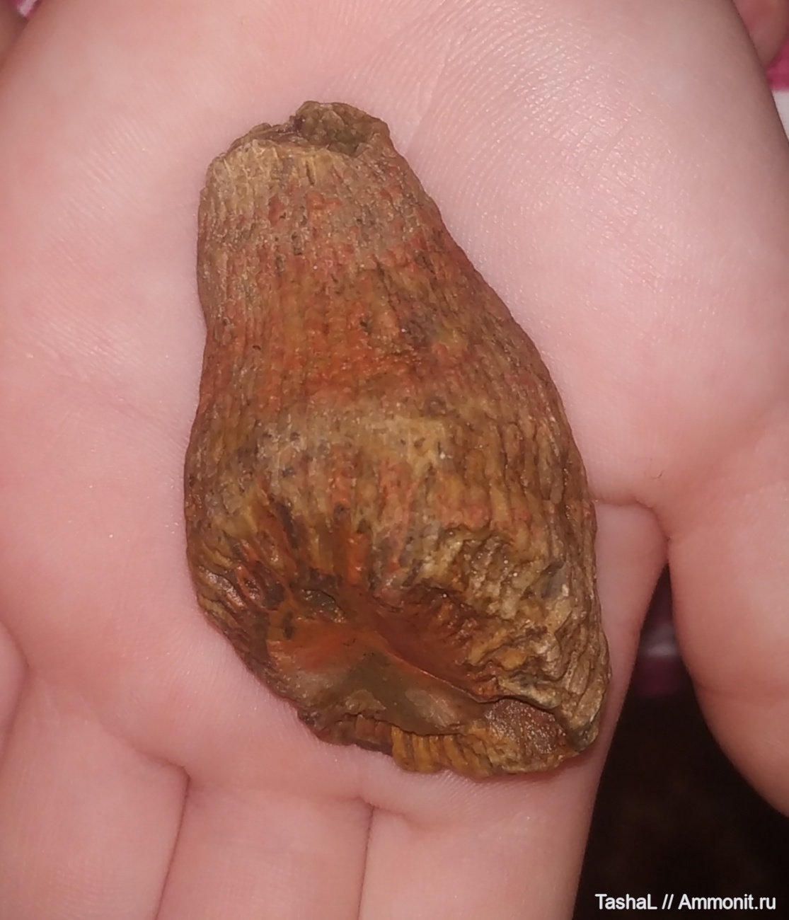 Место находки - Костромская область. Гравийная насыпь на дороге. Откуда привезен гравий, я не знаю. Там же мы нашли много белемнитов | ||||||