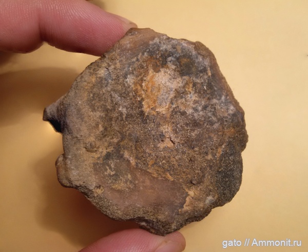 Найден в Михайлове. Провел там целый день, а в итоге понял, что копался не в том месте. Зато разжился позвонком ихтиозавра, предположительно верхний келловей, максимальный диаметр 7 см. Аммонит оттуда