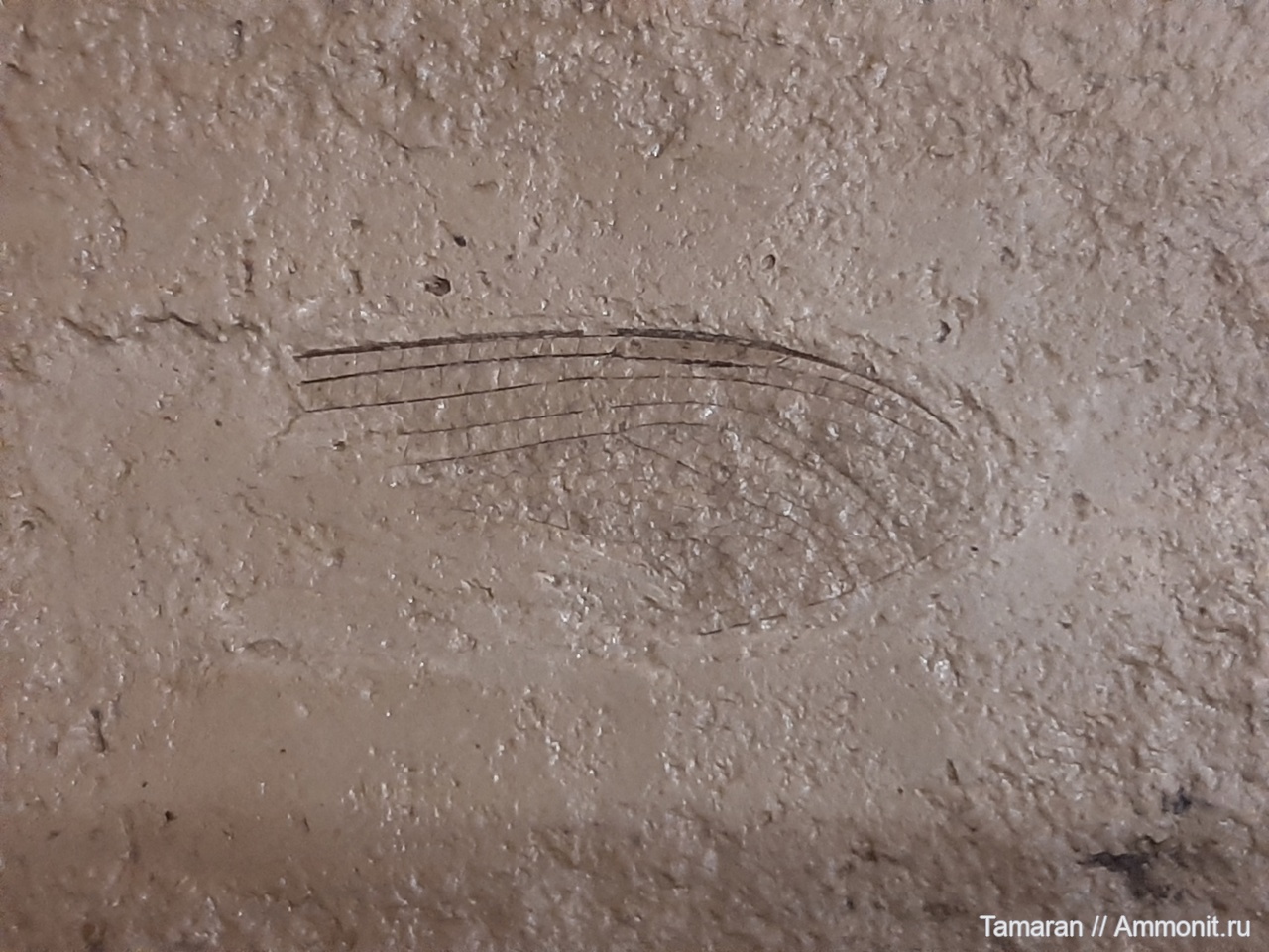Керченские насекомые представлены самыми разными формами - комары, мошки, муравьи, жуки-пильщики, осы. Это крылышко принадлежит древней стрекозе, размеры - 2,7х1,3 см.