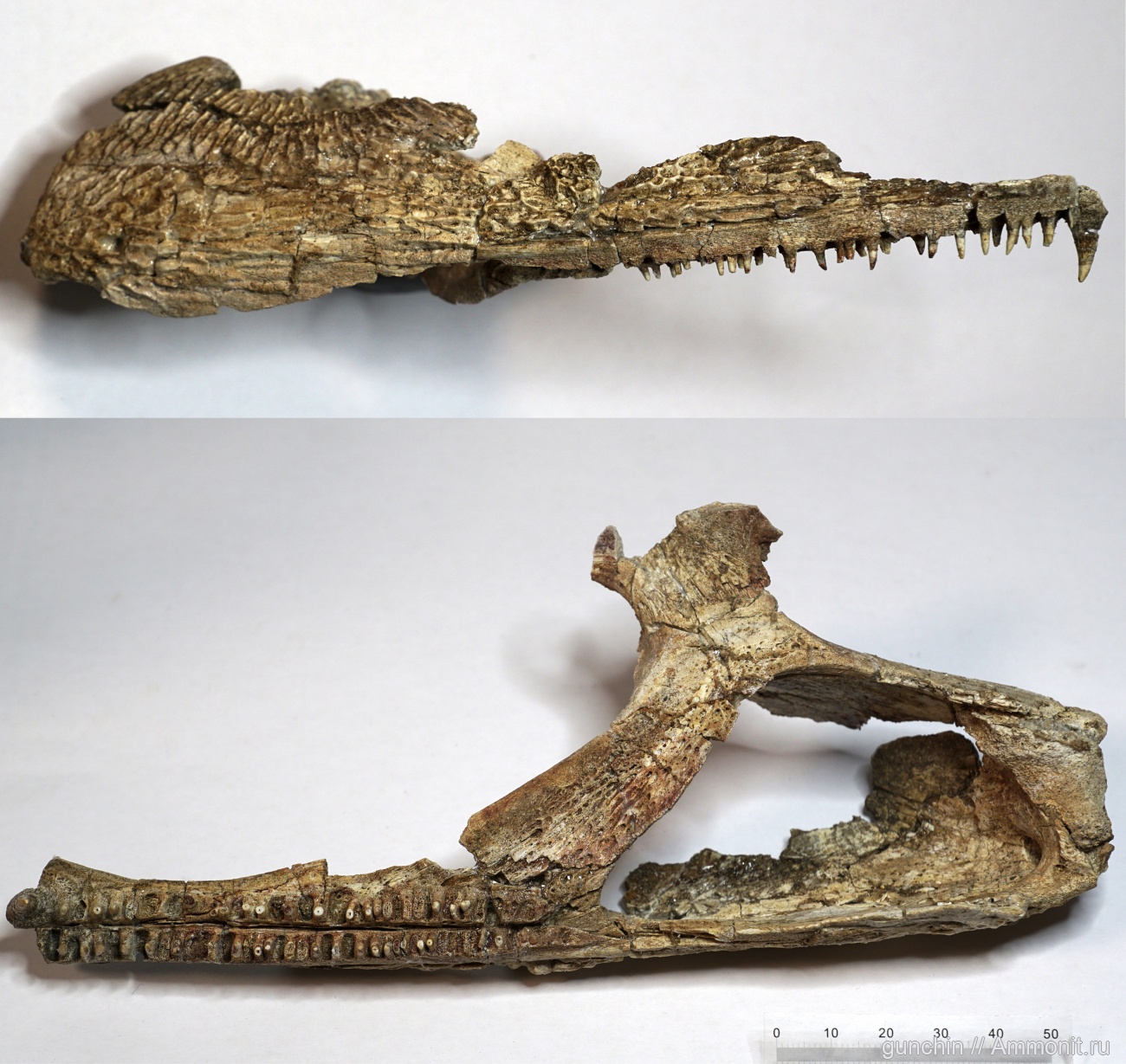 Специалист из ПИН по первой фотографии его определил как Wetlugasaurus angustifrons. При рассматривании в натуре сказал что он наверное Vladlenosaurus. Но уже в ПИНе решил, что это, вероятнее всего, какой-то пожилой Benthosuchus. Правда, не очень понятно, что он делал в этом местонахождении. Окончательного решения пока нет...