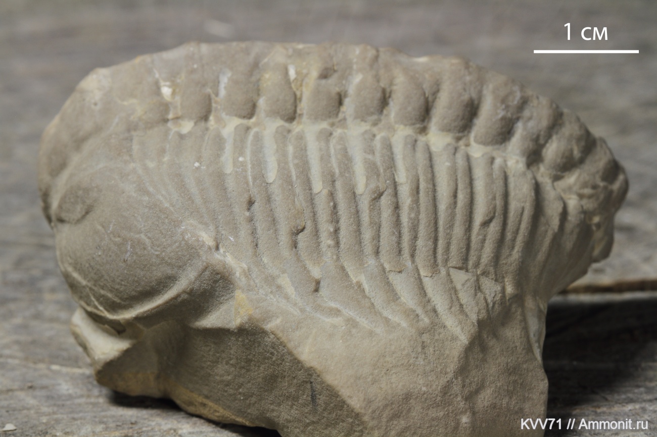Трилобит не определен. Вот, что он ответил: "… К сожалению, я мало чем могу помочь. Для нормального определения трилобитов нужно быть действующим специалистом. А я к синским материалам притрагивался ненадолго и более 20 лет назад. ... Что касается сворачивающихся трилобитов, то в среднем кембрии они есть. Еще студентом я находил свернутые экземпляры, кажется рода Erbia. Ну, и конечно, сворачивались агностиды. Как обстояли дела в раннем кембрии - не знаю. Способен ли был трилобит сворачиваться, понять можно. У сворачивающихся должны быть четко подогнаны друг к другу передний край головного щита и задний конец панциря. Кстати, Ваш экземпляр не свернутый, а согнутый».