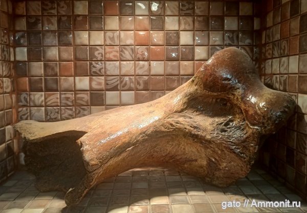 Неполная плечевая кость шерстистого носорога была найдена неподалёку от Ундор в 90-е годы. Фото с размером