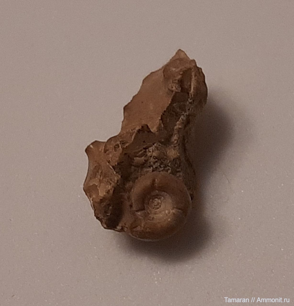 Такой вот малыш с Жиль-Тау - самый мелкий аммонит в коллекции на данный момент. Диаметр - всего 4,7 мм. С его определением возникли проблемы, часом, не кто-то из Metalegoceras ли это?