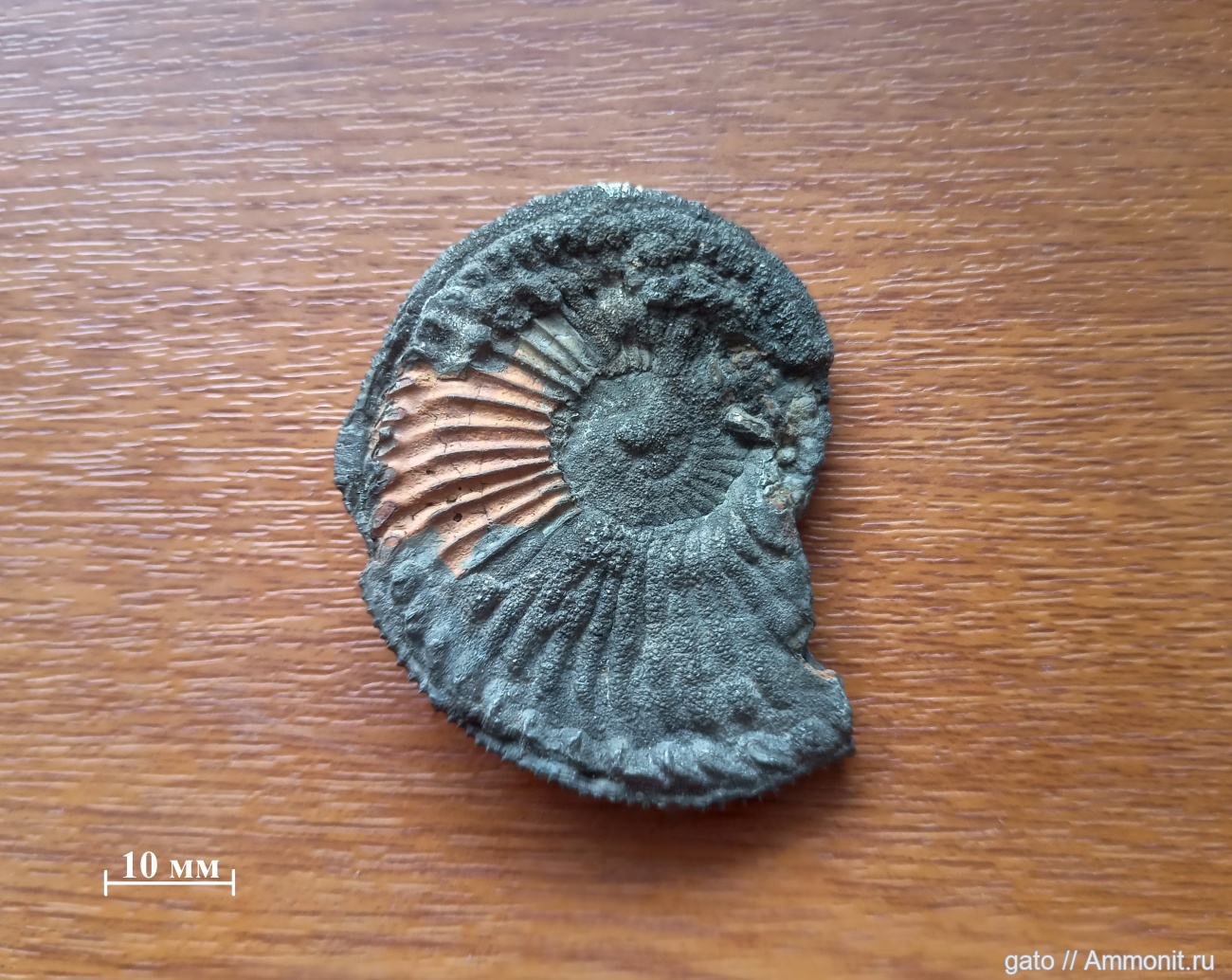 Спасибо М.Рогову за определение. Euprionoceras - кимериджский род кардиоцератид, почти не представленный на сайте (в отличие от Plasmatites и Amoebites и, в меньшей степени, Hoplocardioceras и Nannocardioceras).