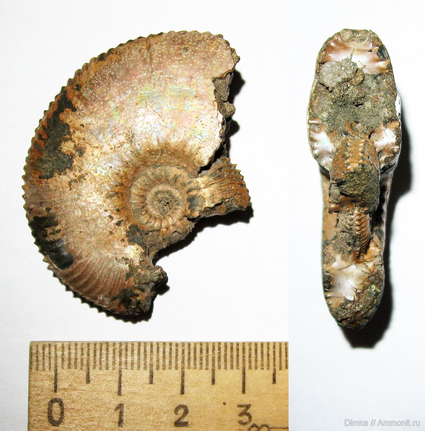 Этот аммонит найден на берегу р. Унжи в окрестностях г. Макарьев. К сожалению точно слой указать не могу, т.к. я его нашел уже выпавшем из слоя и лежащим в нижней части пачки среднекелловейских глин. Так что предположительно средний-верхний келловей.