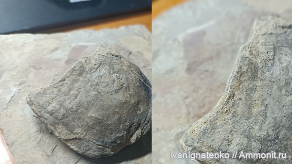 Было найдено в Украине Хмельницкой области, Камянец-Подольского, района возле реки Смотрыч. Порода хрупкая и легко разделяется на слои . Совсем близко часто попадаются ракоскорпионы. Похоже на голову, но не уверен. Помогите в определение, пожалуйста. Лудловский ярус, ранный горстиний, яругская серия, баговецкая свита, устьевская подсвита.