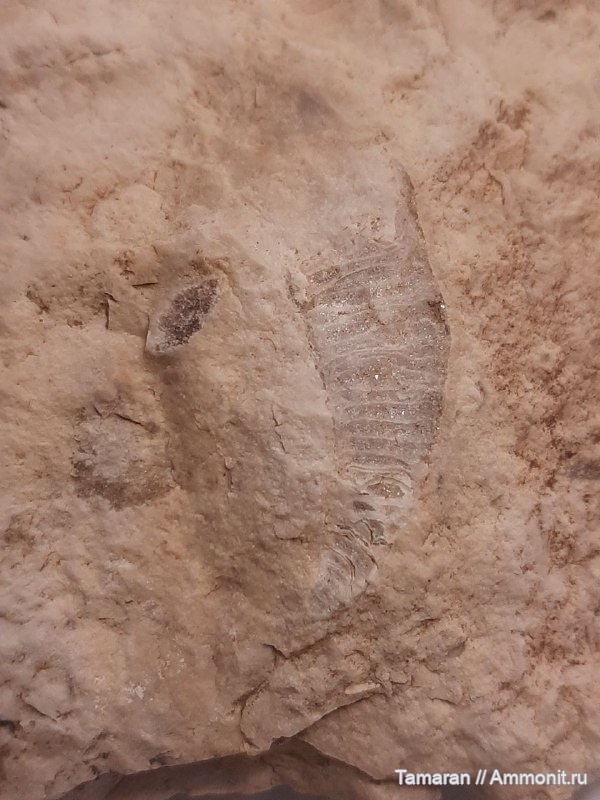 Странный образец, подаренный подругой из Москвы. Касательно его природы мы не сошлись во мнениях: она утверждала, что это - ортоцерид такой, но форма "перегородок" (а-ля "косо-криво лишь бы живо"), загнутая форма и отсутствие видимого сифона напоминали мне какой-то коралл.
