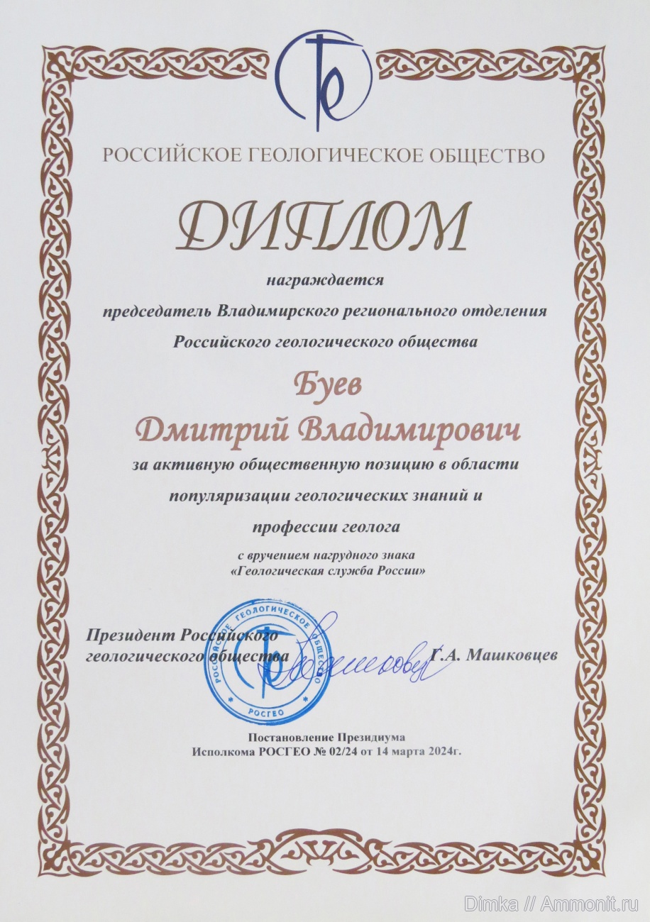 Подтверждаю: экспозиция очень качественная, и этот диплом-минимум, чем можно отметить Дмитрия. Он практически дедушка Ленин от палеонтологии, всегда окружен детьми и образцами :) | ||||||