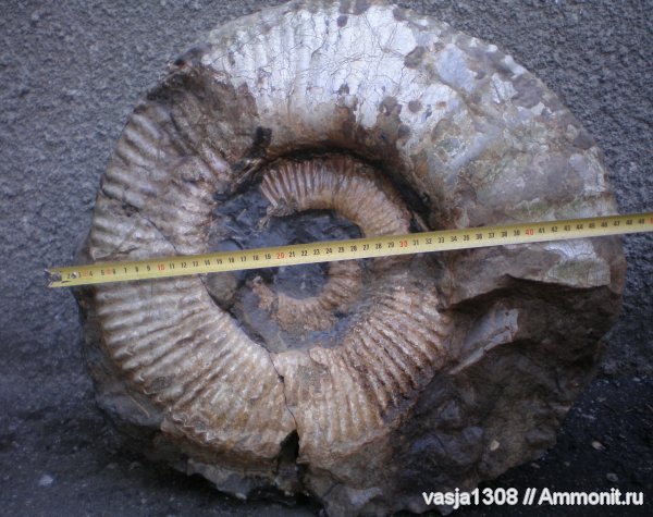 Аммонит очень похож на вот этого: http://www.ammonit.ru/foto/184.htm - Ammonitoceras из аптского яруса нижнего мела. | ||||||