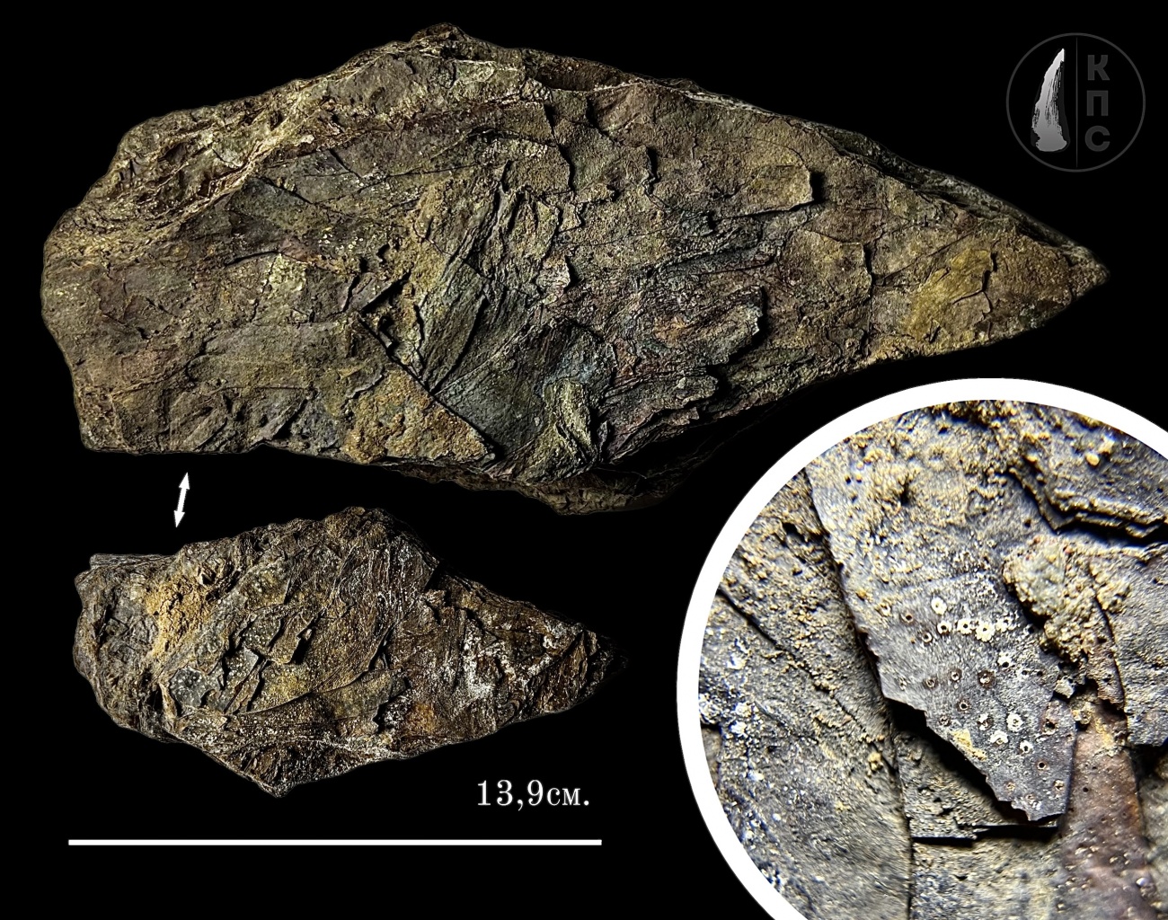 Плитка из Shuguria (Шугурии) sp., найдена на отвалах Михайловского ГОКа из отложений живетского яруса Девонского периода.