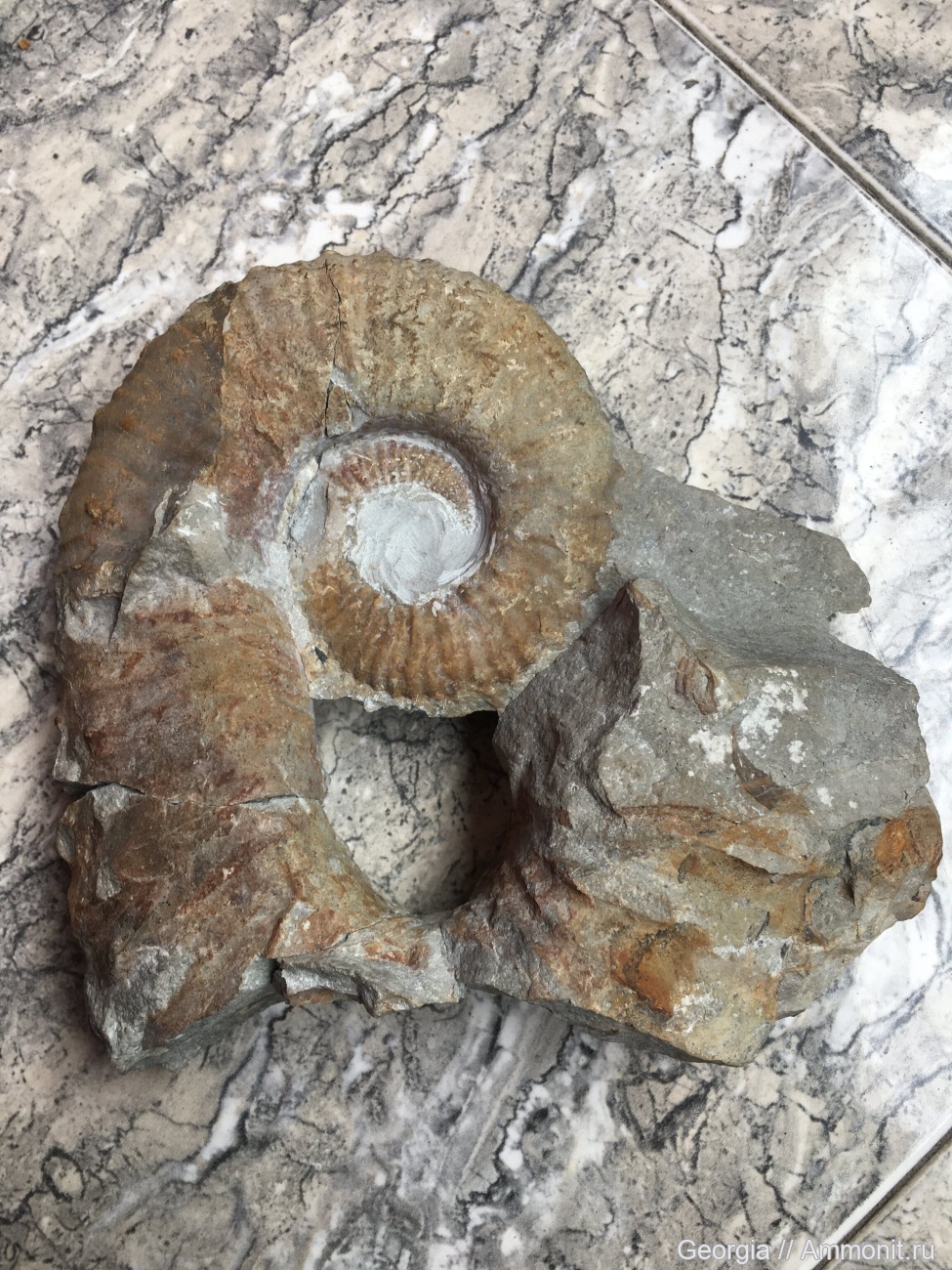Был найден не далеко от села Гелавери, в плотных серых барремских известняках. К сожалению целиковый экземпляр найти не удалось, ну хотя бы так. Судя по атласу "АНЦИЛОЦЕРАТИДЫ ЮГА СССР" данный вид называется Pseudocrioceras waagenoides.