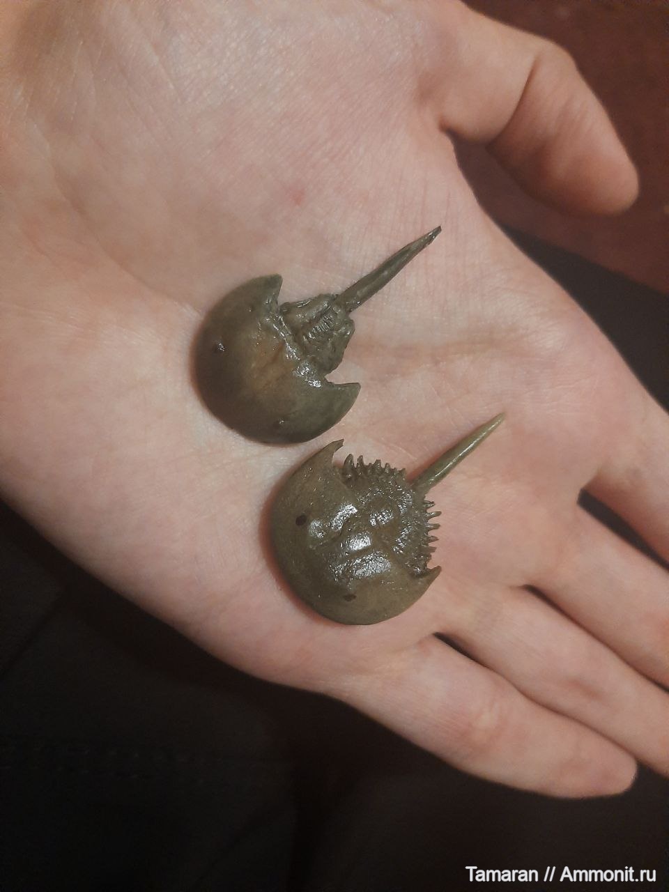Эта маленькая парочка - модели древних мечехвостов Limulitella volgensis и Belinurus trilobitoides от студии Дельвесто. Выполнены по просьбе Виены Отропиан, подарены ею же.