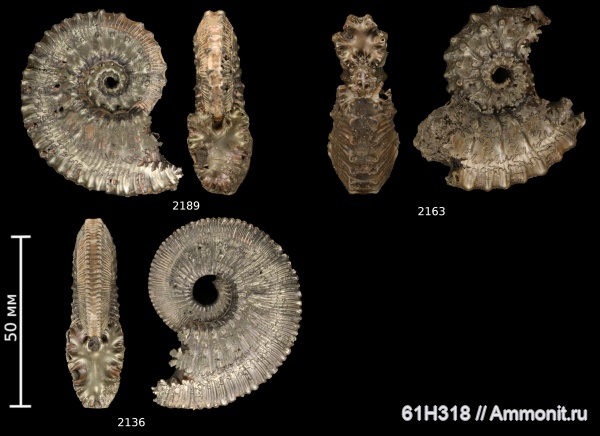 Нижний - с учётом высоты залегания, Kosmoceras Proniae. Верхние два отдалённо напоминают K. gemmatum, но даже друг на друга не очень похожи)