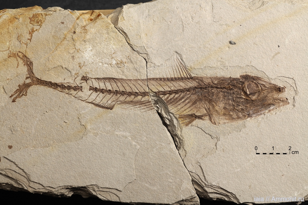 Приятной сохранности скумбрия, тоже из старых сборов. Следы почти полностью сгнивших дополнительных плавничков были видны на противоотпечатке. За исключением пары морфометрических параметров близка к Scomber gnarus, что, на сколько я понимаю, в общем случае является проблемой, так как картируемые в районе "точки" возраста вмещающих пород на современных картах предполагают находки более архаичных скумбрий.